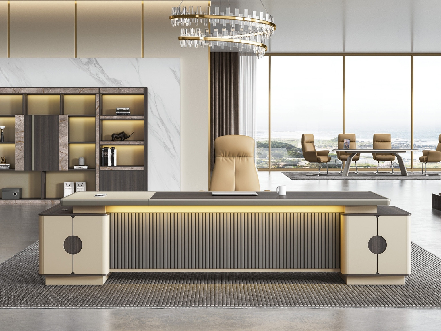 Акценты и декор: Добавьте акценты и декоративные элементы, которые соответствуют корпоративному стилю. Это поможет создать атмосферу, соответствующую статусу руководителя.